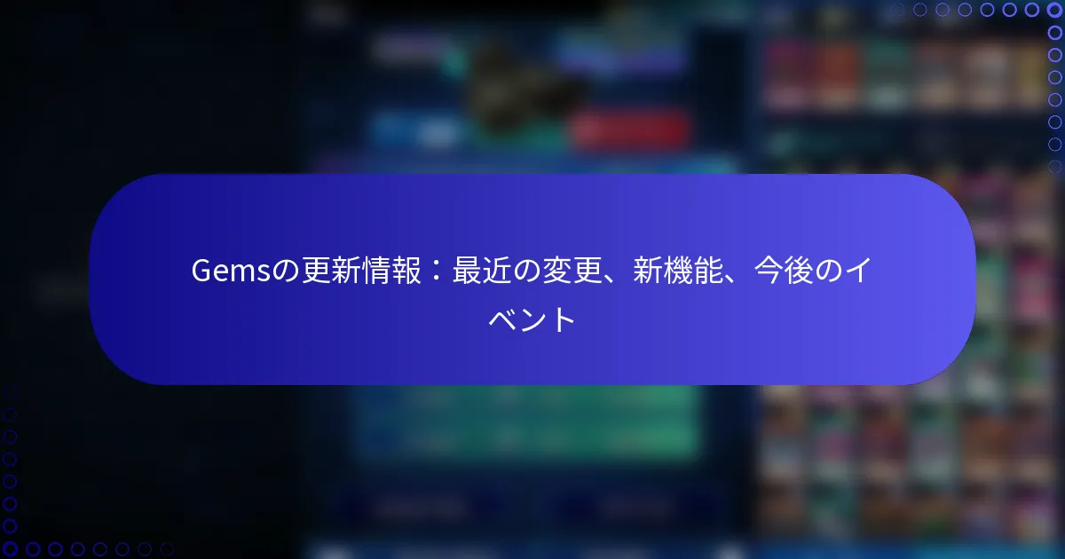Gemsは最近、バグ修正や価格調整を含むいくつかの更新を実施し、ユーザーエクスペリエンスを向上させました。新機能が導入され、機能性とユーザーエンゲージメントが改善され、プラットフォームがより直感的になりました。さらに、今後のウェビナーやコミュニティの集まりでは、ユーザーが最新の更新について学び、洞察を共有する機会が提供されます。