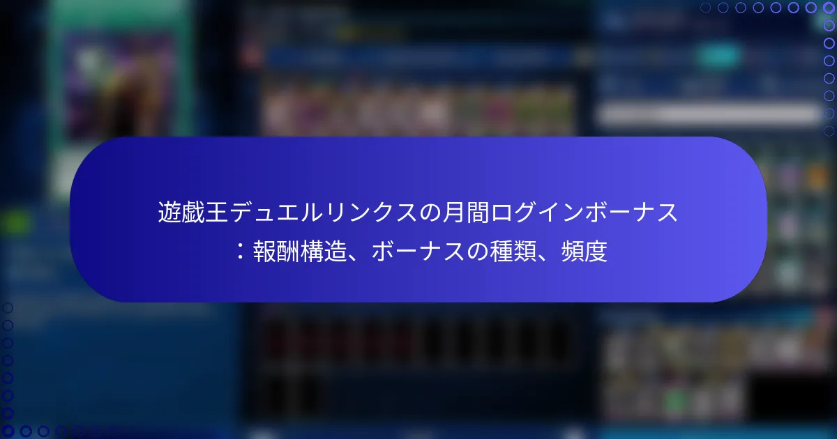 「遊戯王!デュエルリンクス」の月間ログインボーナスは、プレイヤーの月間ログイン頻度に基づいてさまざまな報酬を提供します。このシステムは定期的なプレイを奨励し、ゲーム体験を向上させる貴重なアイテムを提供します。