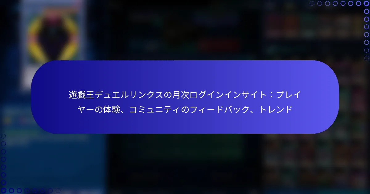 「遊戯王!デュエルリンクス」の月次ログインに関するコミュニティフィードバックは、プレイヤーの体験や感情を強調し、フォーラムやソーシャルメディアを通じて共有されることが多いです。プレイヤーはゲームのアップデートに対する反応を頻繁に議論し、これがエンゲージメントレベルや全体的な満足度に大きな影響を与えることがあります。