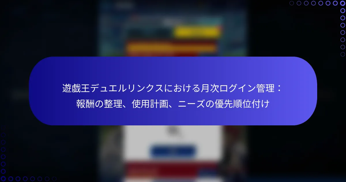 遊戯王!デュエルリンクスでは、月間ログイン報酬はプレイヤーが定期的にゲームに参加するための貴重なインセンティブとして機能します。これらの報酬を効果的に整理し、使用計画を立てることで、プレイヤーはゲームプレイ体験を向上させ、利用可能なリソースを最大限に活用することができます。報酬の種類に基づいてニーズを優先することで、ゲーム内の進行や戦略をさらに最適化できます。
