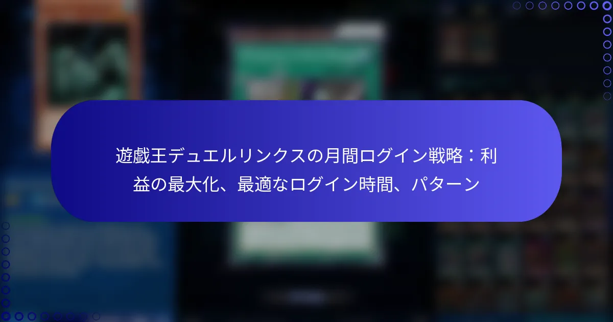 「遊戯王!デュエルリンクス」で報酬を得るための最適なログイン時間は、通常、イベントやボーナスがアクティブなピーク時間帯です。プレイヤーは、日々のボーナスと全体的な利益を最大化するために、特定の日や時間に焦点を当てるべきです。